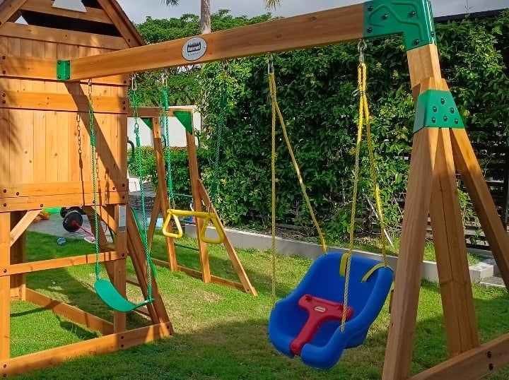 Versatile Swinging Fun: 2 classic belt swings and 1 trapeze allow multiple kids to swing at once